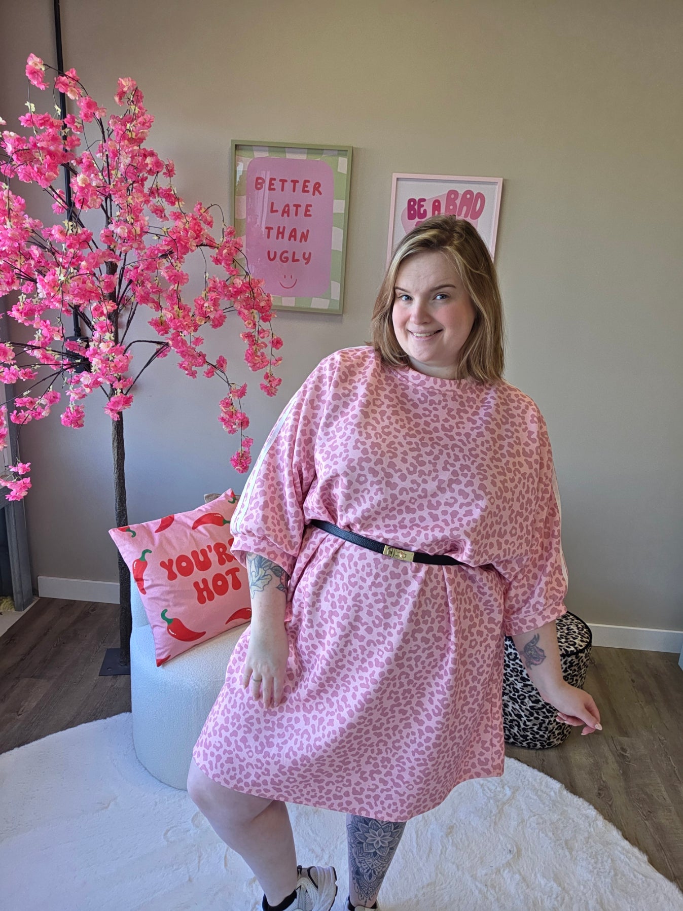 Deze panter jurk met een stoer streepje op de mouw is de perfecte combinatie van vrouwelijk, stoer en comfortabel. De trendy panterprint zorgt voor een echte statement look, terwijl het sportieve streepdetail op de mouwen een leuke, edgy twist geeft.