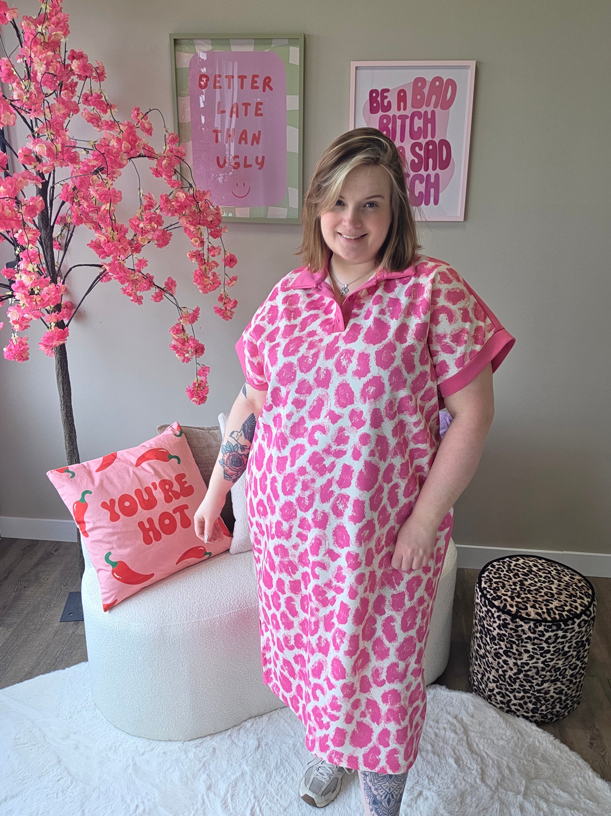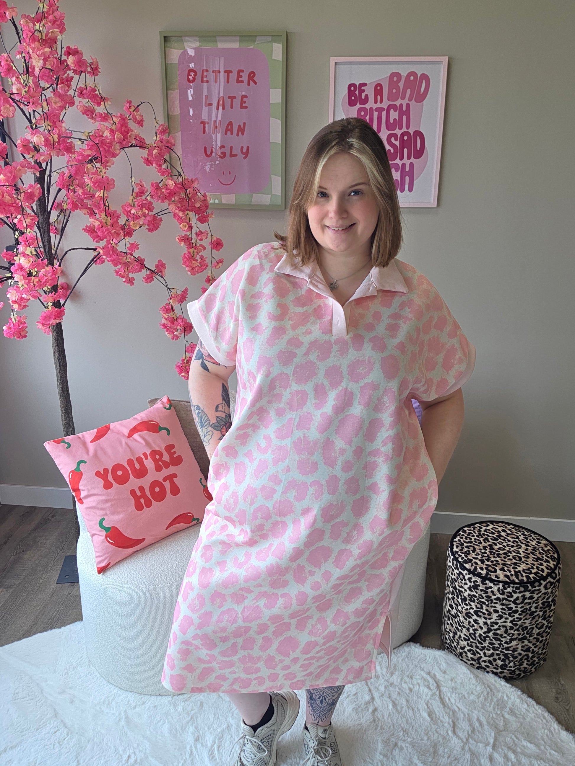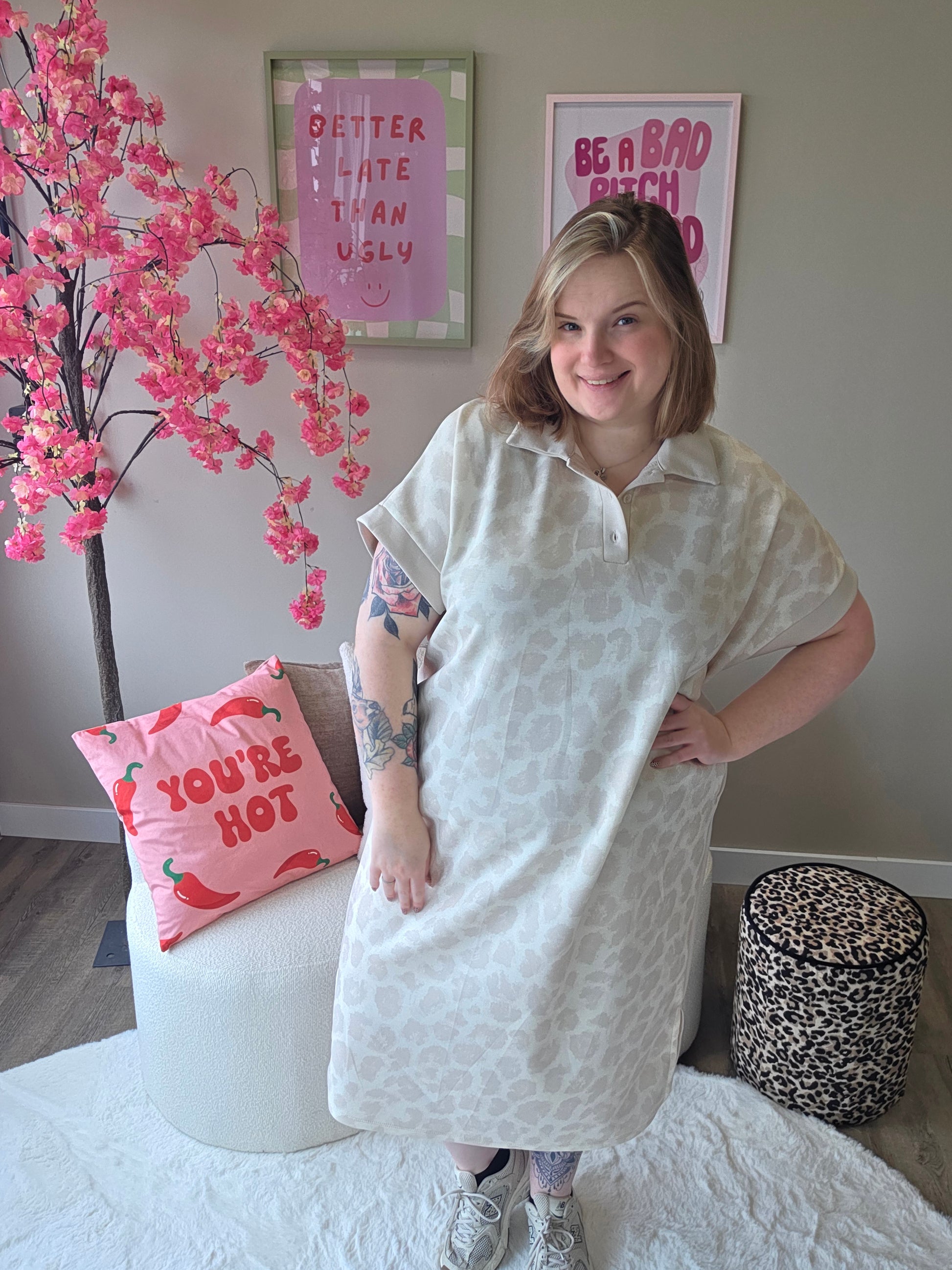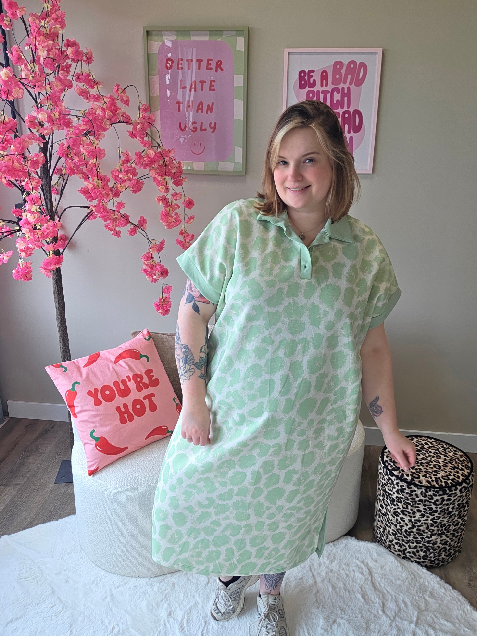 Deze panter polo jurk is de perfecte mix van stoer en casual chic. De panterprint geeft een krachtige, trendy uitstraling, terwijl het polo model zorgt voor een sportieve en effortless look.
