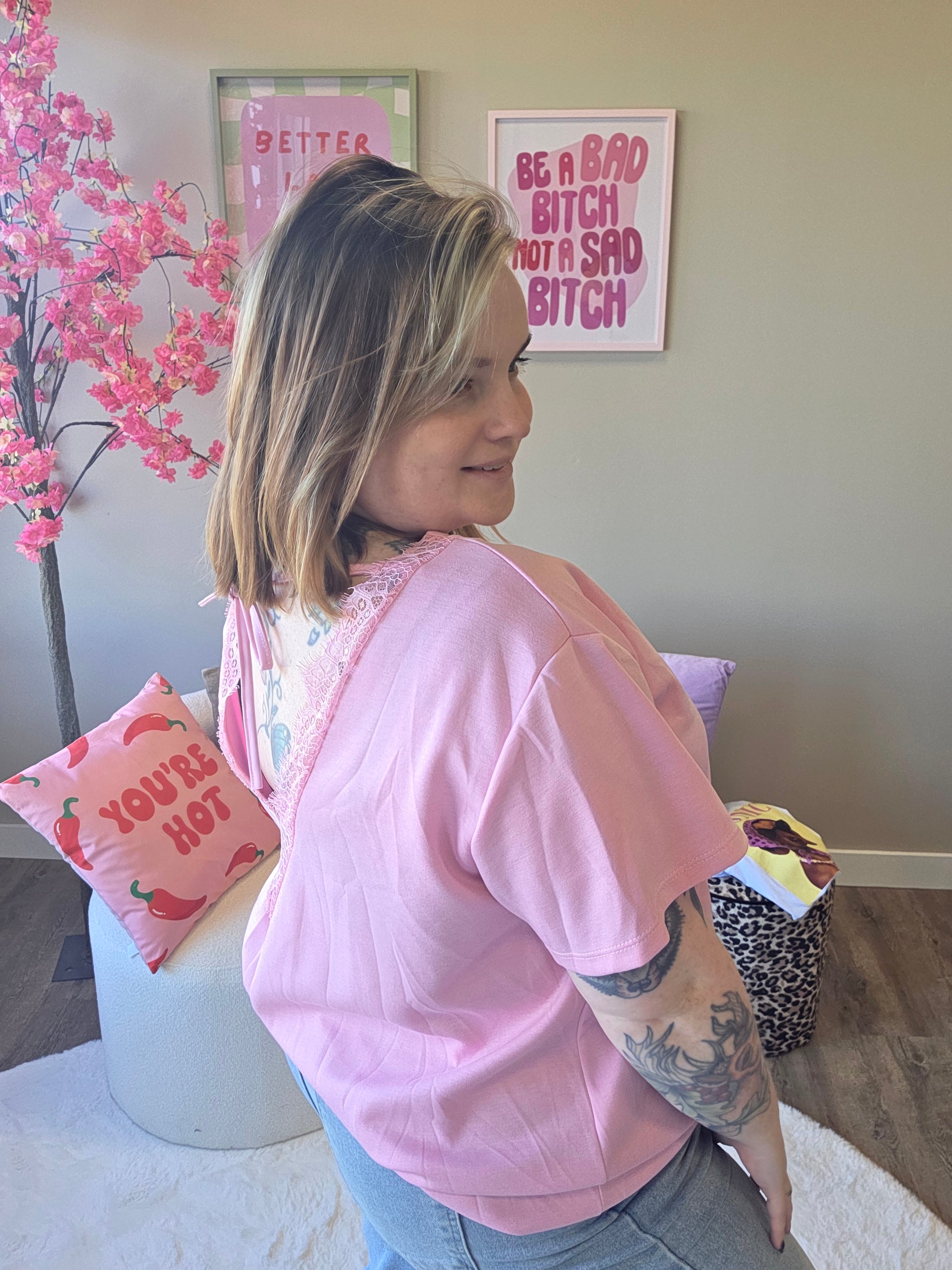 T-Shirt met Kant V-Rug (In 4 kleuren)
