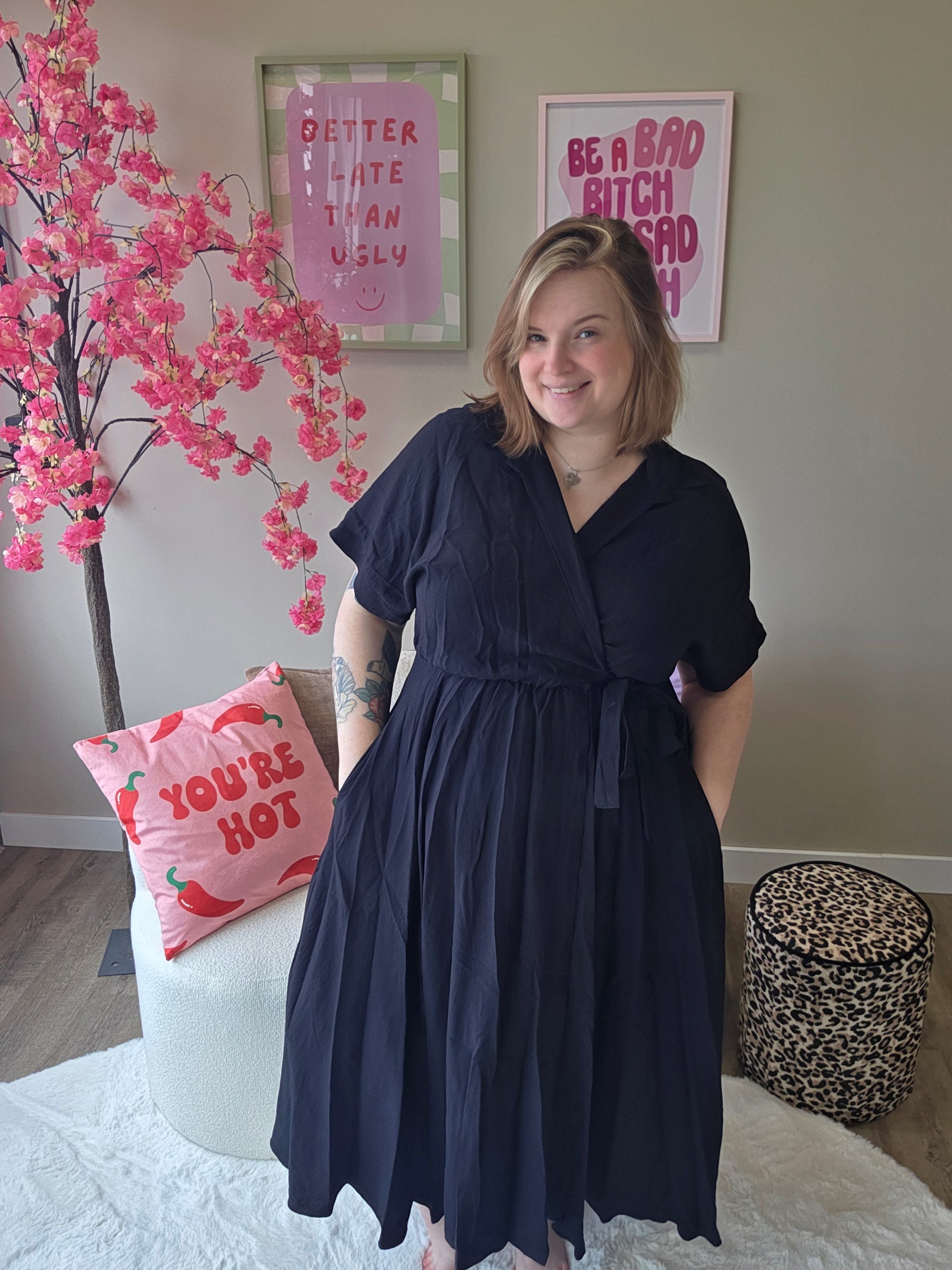 Of je nu een dagje weg gaat of een etentje hebt — met deze jurk zie je er moeiteloos stijlvol uit.