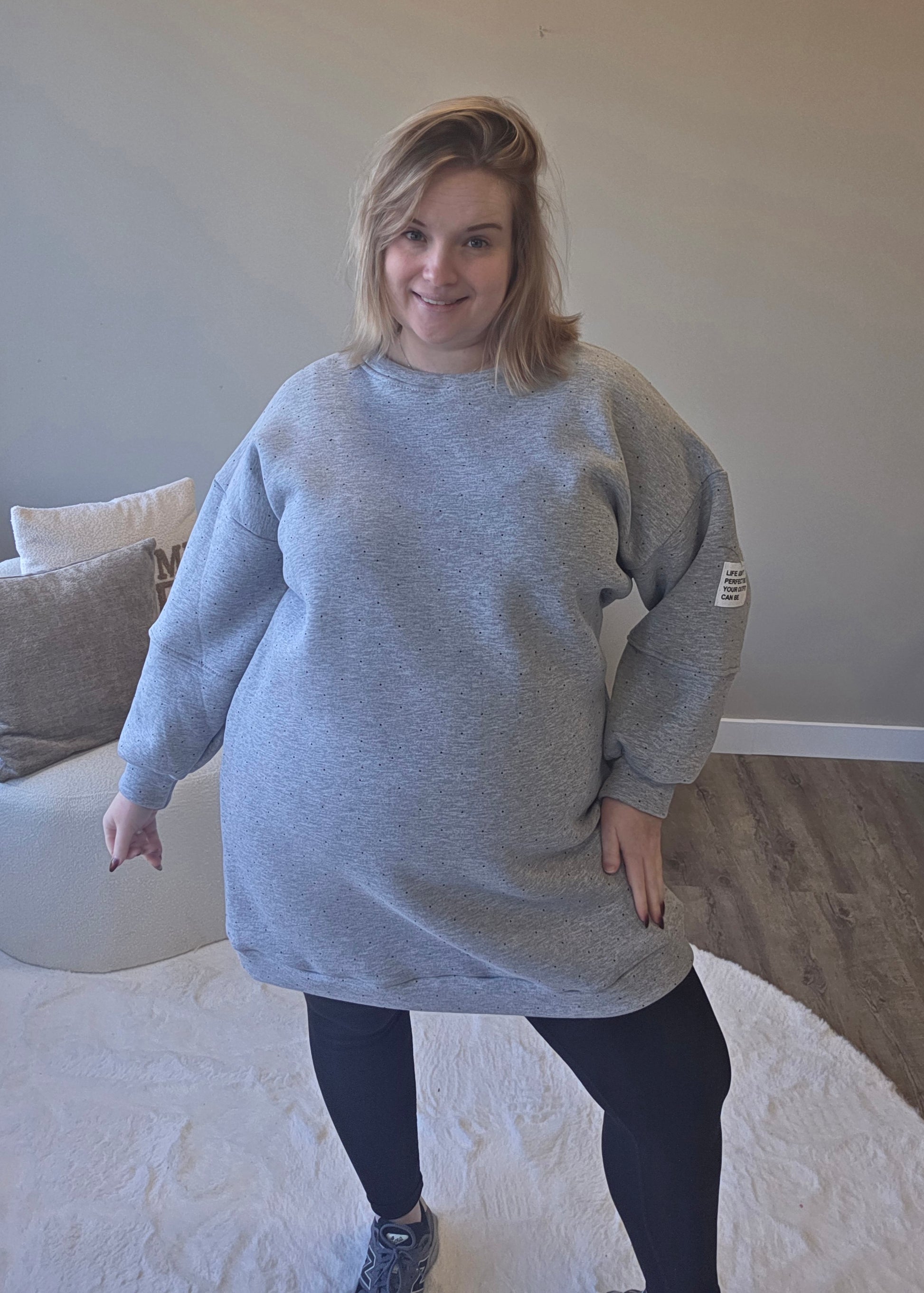 Life Isnt Perf Sweater Dress met Rhinestones (in 2 kleuren)