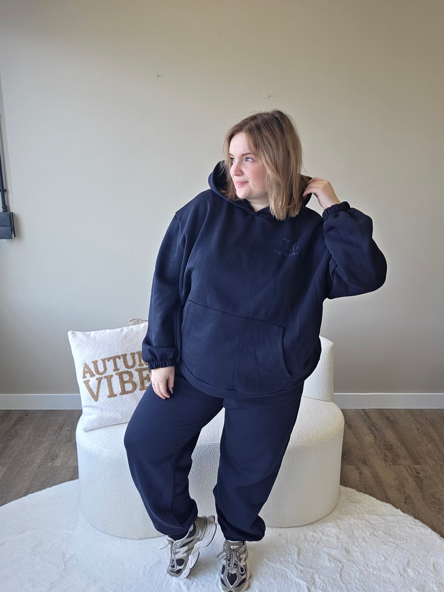 OMG het is een feit ein-der-lijk onze eerst loungewear items! En wat zijn ze tof geworden. Het pak hebben we voor jullie in 95% Katoen en 5% Elastan laten maken, de binnenkant is van een heerlijke fleece stof gemaakt dus koud ga je het deze winter niet meer hebben! Hij is afgewerkt met een capuchon en een buidelzak! De broek kan je lekker hoog optrekken ideaal dus voor mensen die vaak last hebben van de buik, stoma patiënten of je gewoon lekker van highwaist houd ;) Ook deze pakken zijn draagbaar vanaf een 44 (oversized) tot een 52