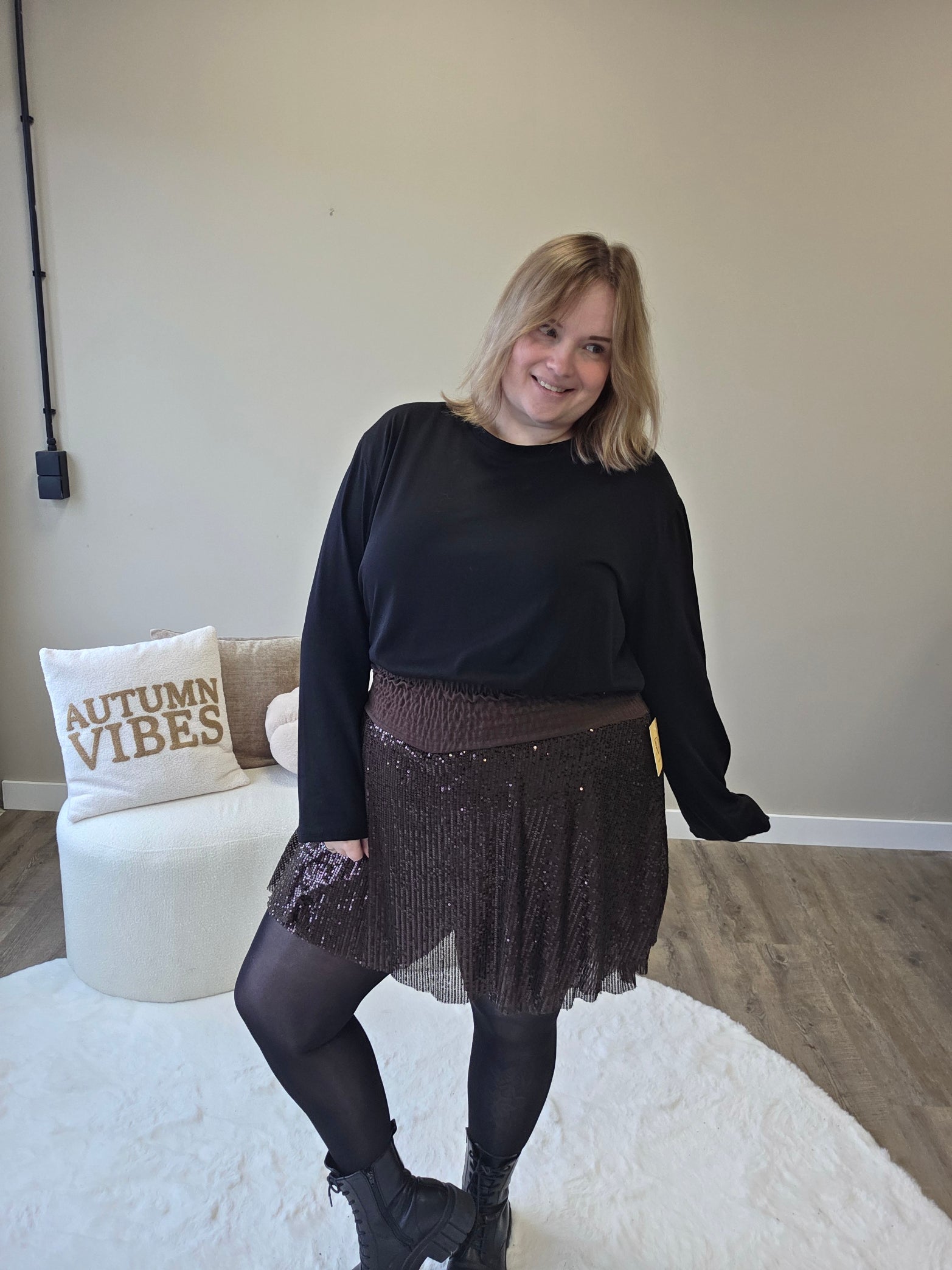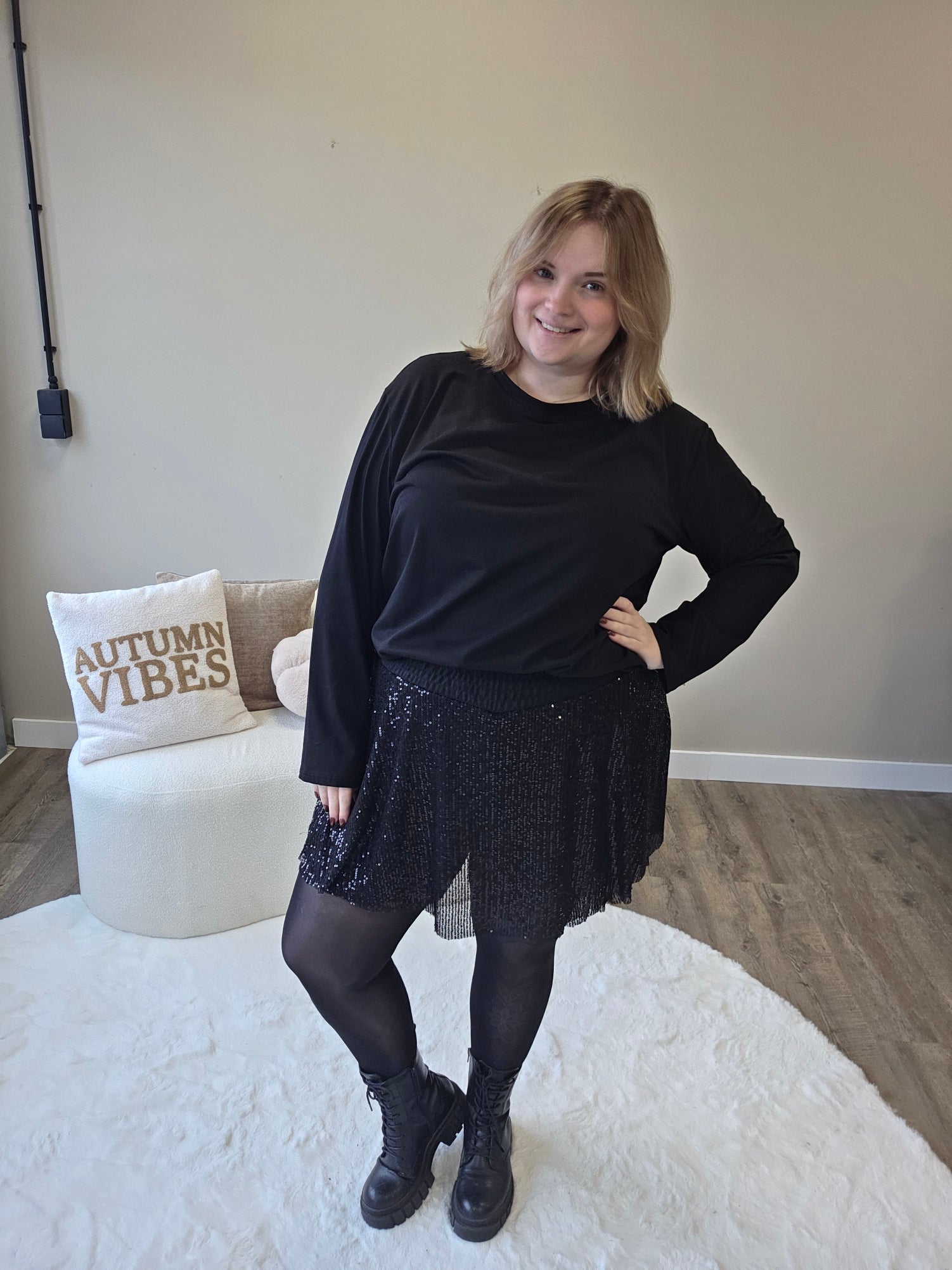 Tijd om te schitteren! ✨ Dit prachtige plussize paillette rokje is dé perfecte mix van glamour en comfort. De fonkelende pailletten zorgen voor een feestelijke look, terwijl het handige binnenbroekje ervoor zorgt dat jij je de hele avond vrij en zelfverzekerd kunt bewegen.