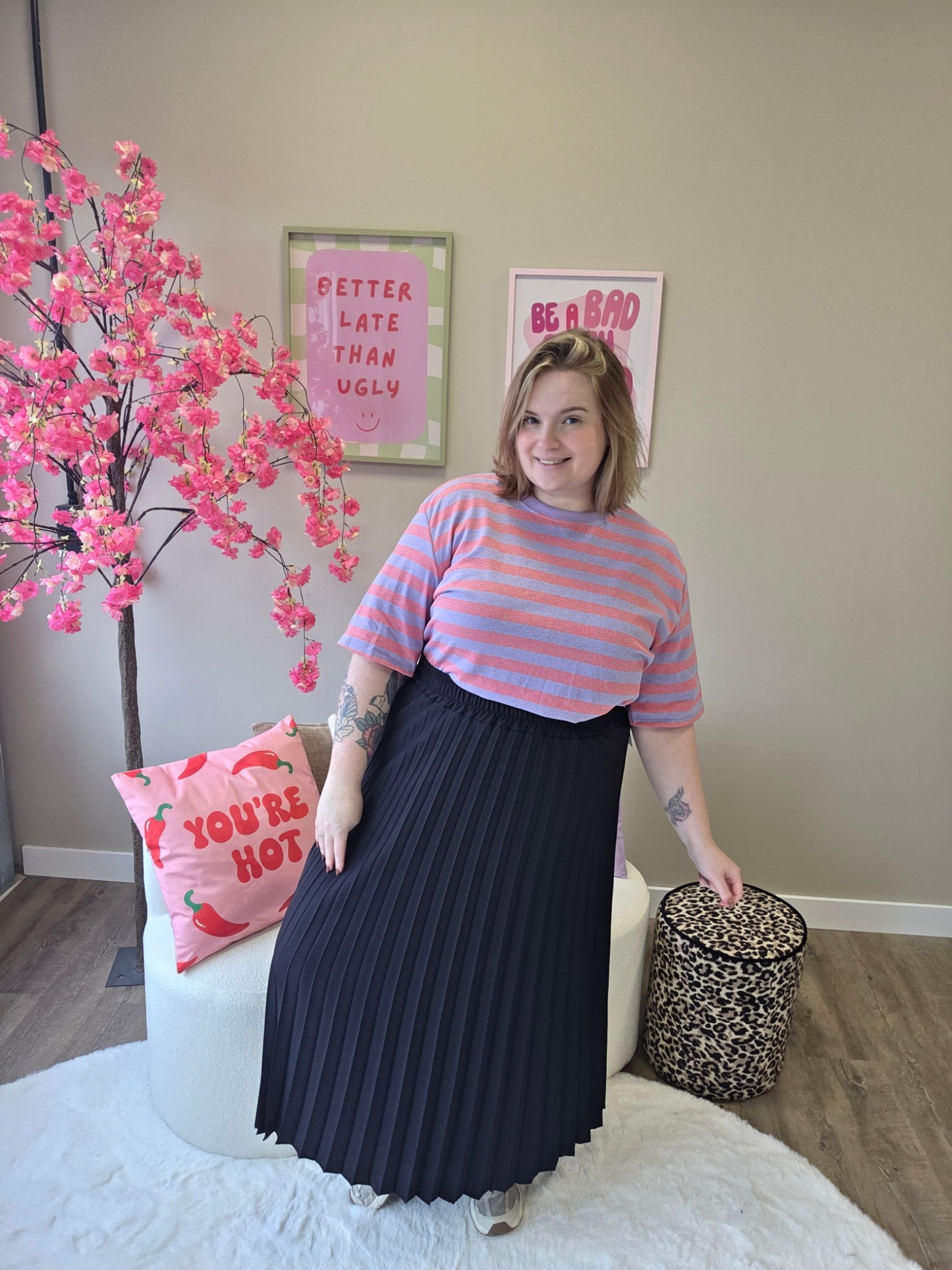 Deze rok is een echte klassieker die nooit uit de mode raakt. De fijne plooien zorgen voor een speels, zwierig effect en geven de rok een elegante, vrouwelijke uitstraling.