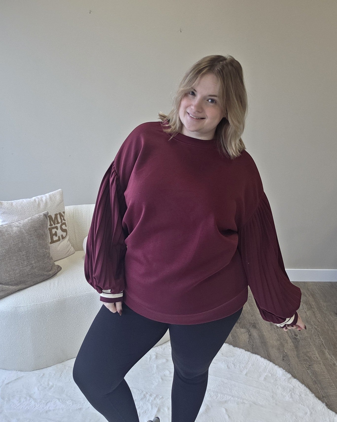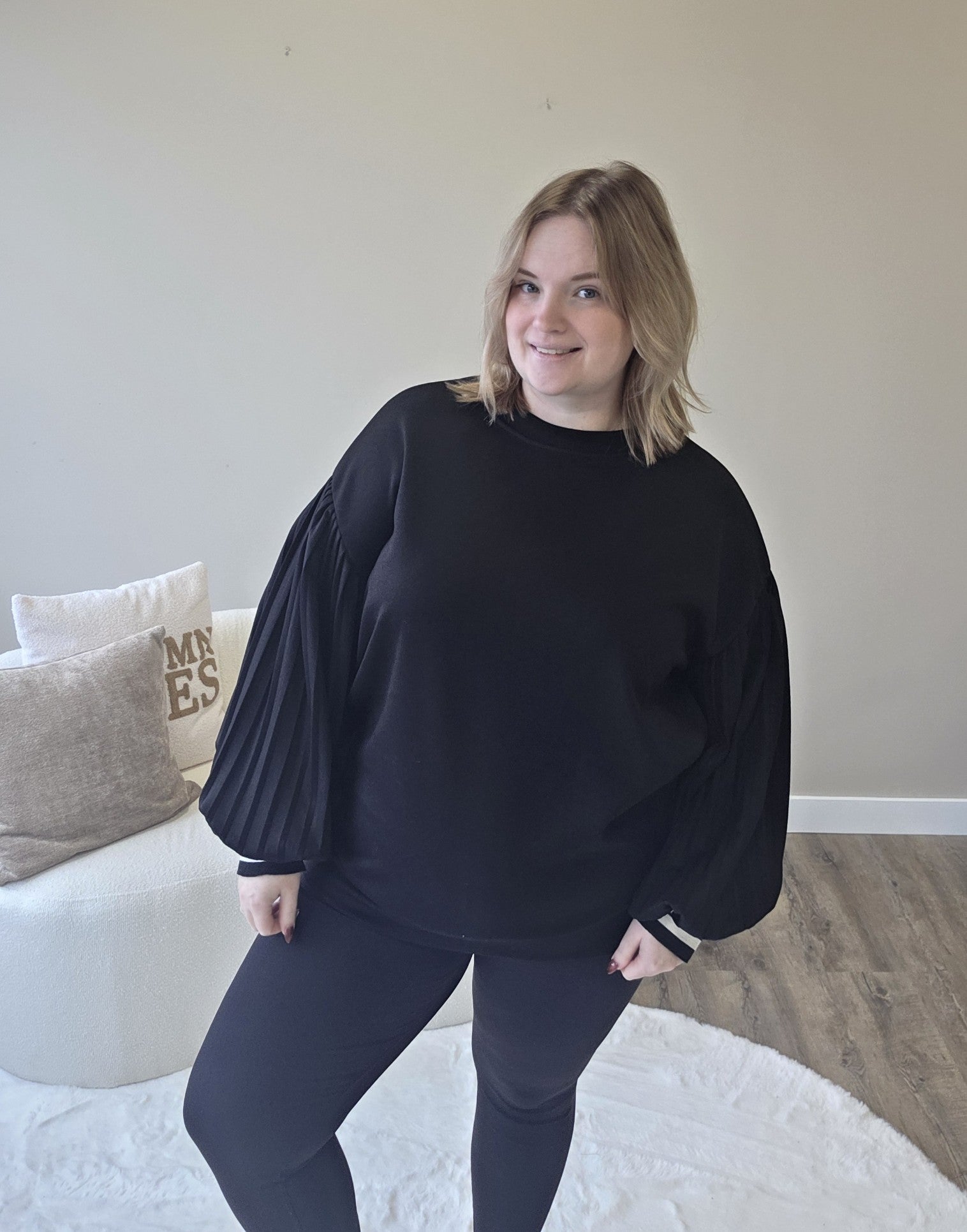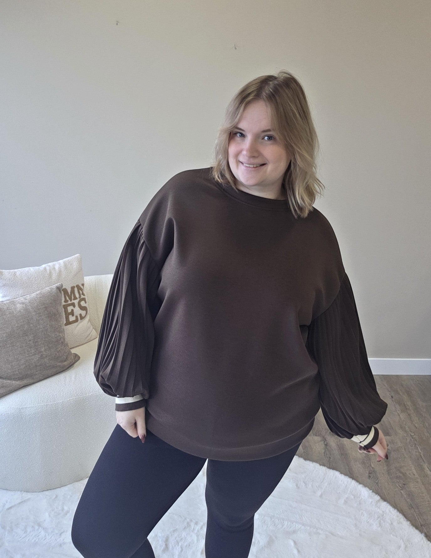 Deze plussize plissé trui in 3 kleuren is dé perfecte mix tussen classy en trendy. De fijne plisséstructuur geeft de trui een luxe uitstraling, terwijl de driedelige kleurcombinatie zorgt voor een speels, eigentijds effect dat je outfit meteen laat opvallen.