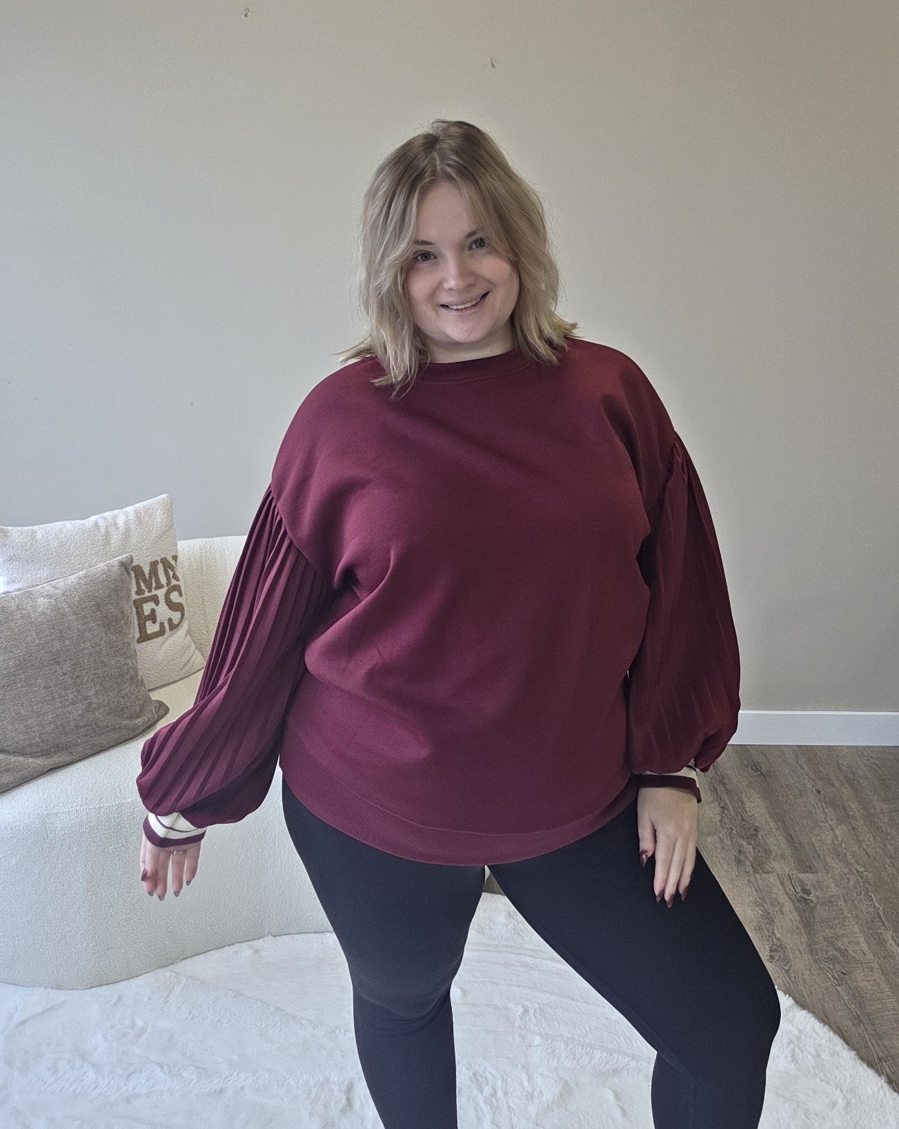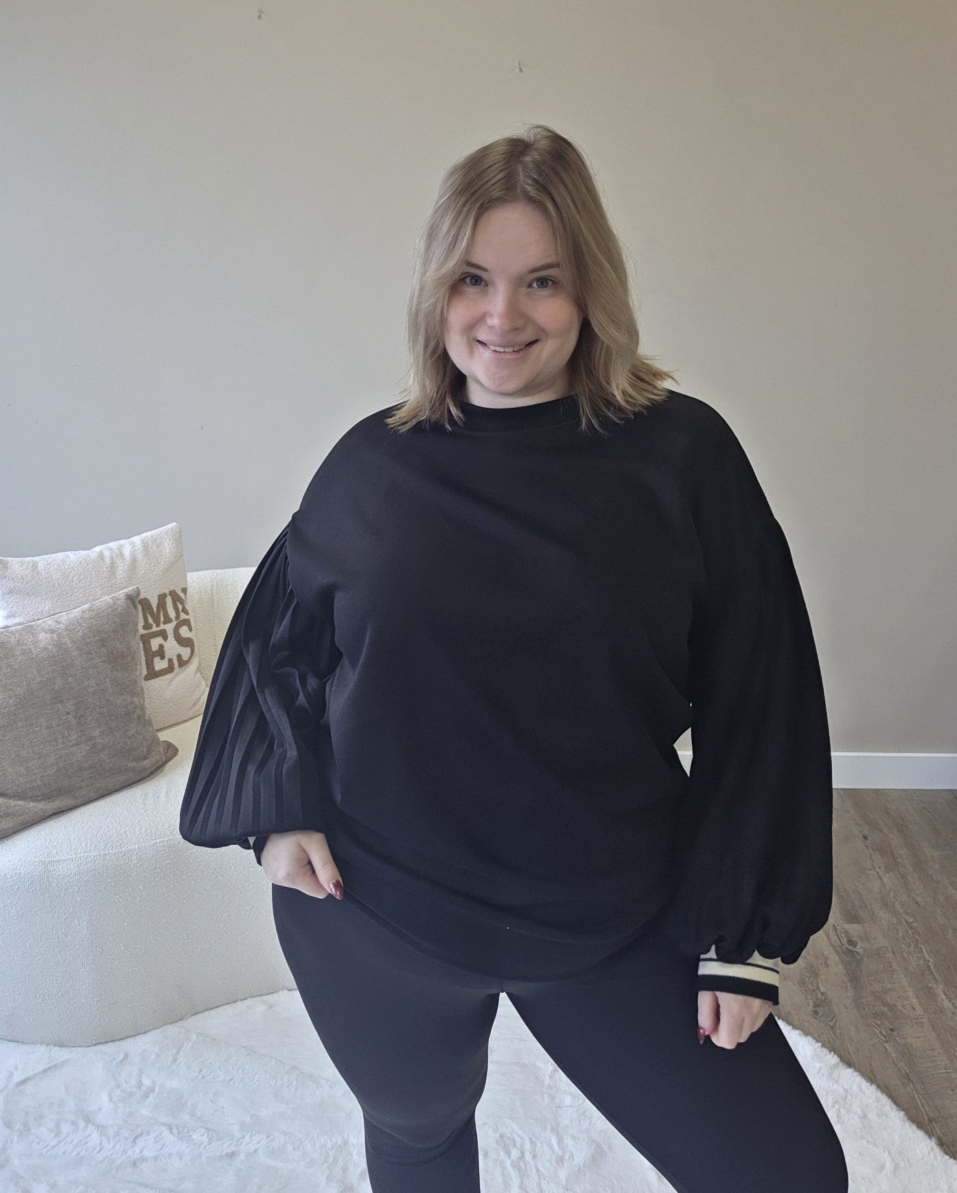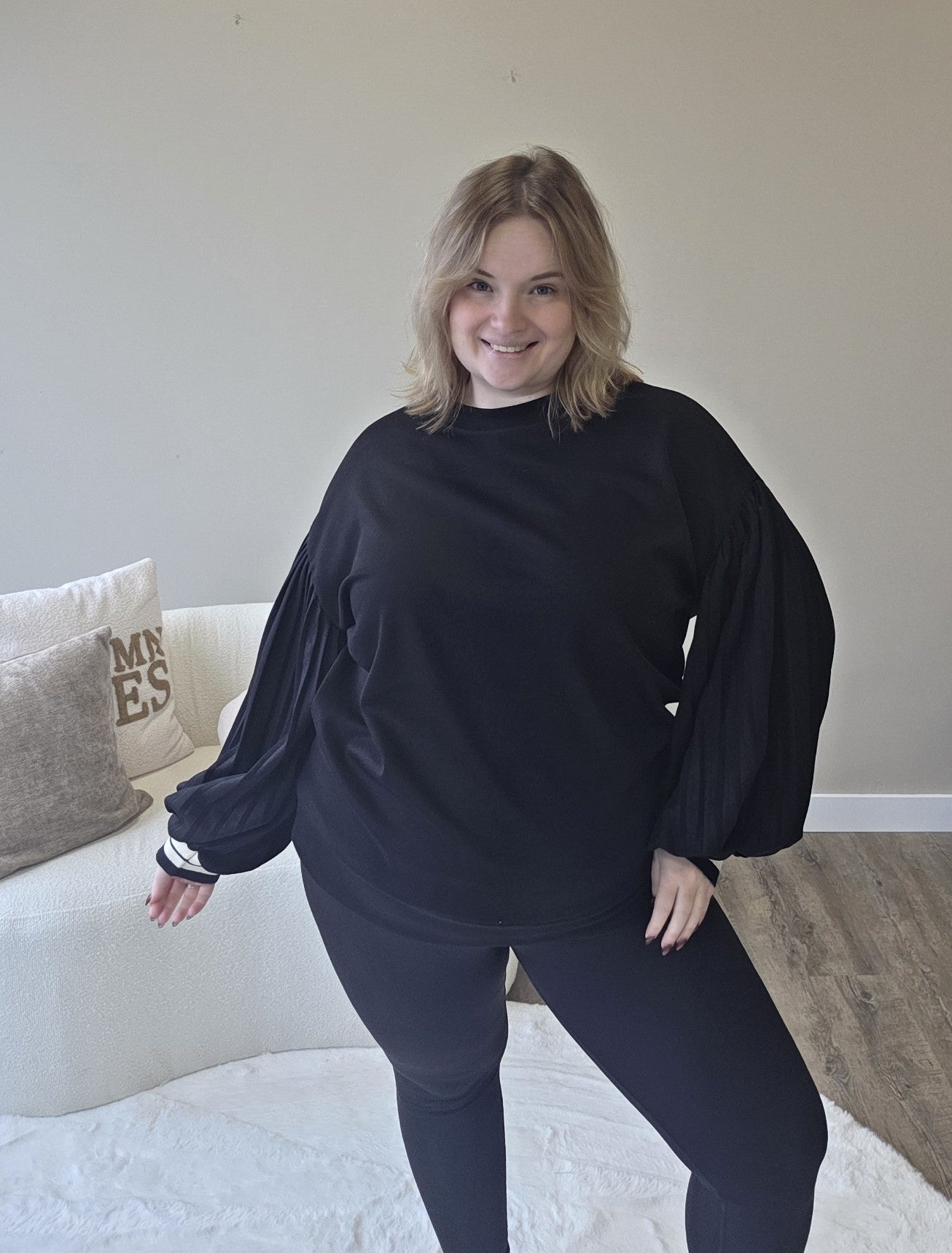 Deze plussize plissé trui in 3 kleuren is dé perfecte mix tussen classy en trendy. De fijne plisséstructuur geeft de trui een luxe uitstraling, terwijl de driedelige kleurcombinatie zorgt voor een speels, eigentijds effect dat je outfit meteen laat opvallen.