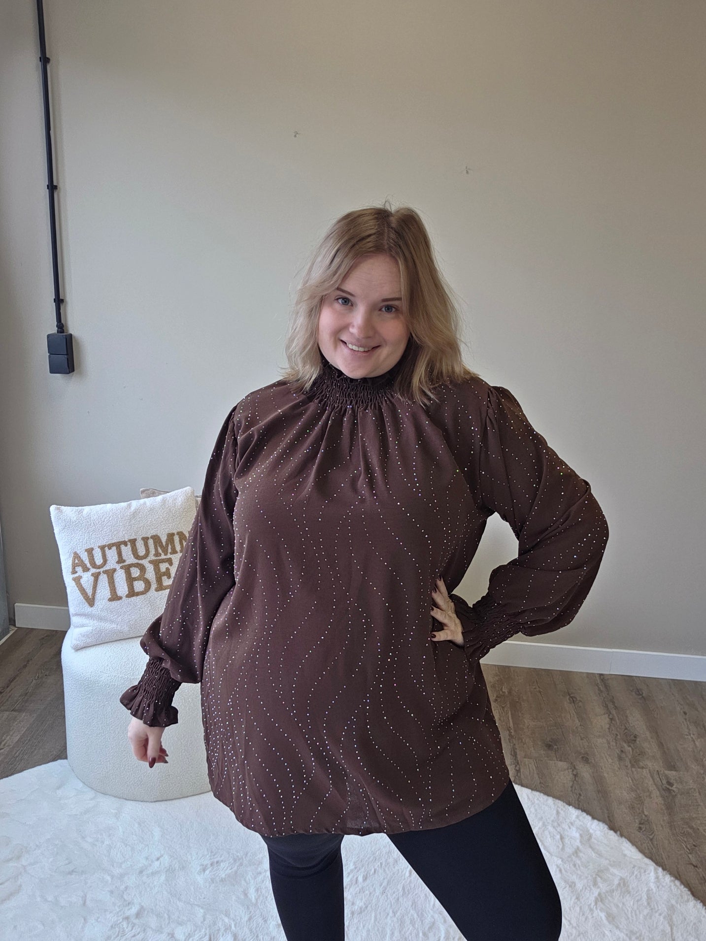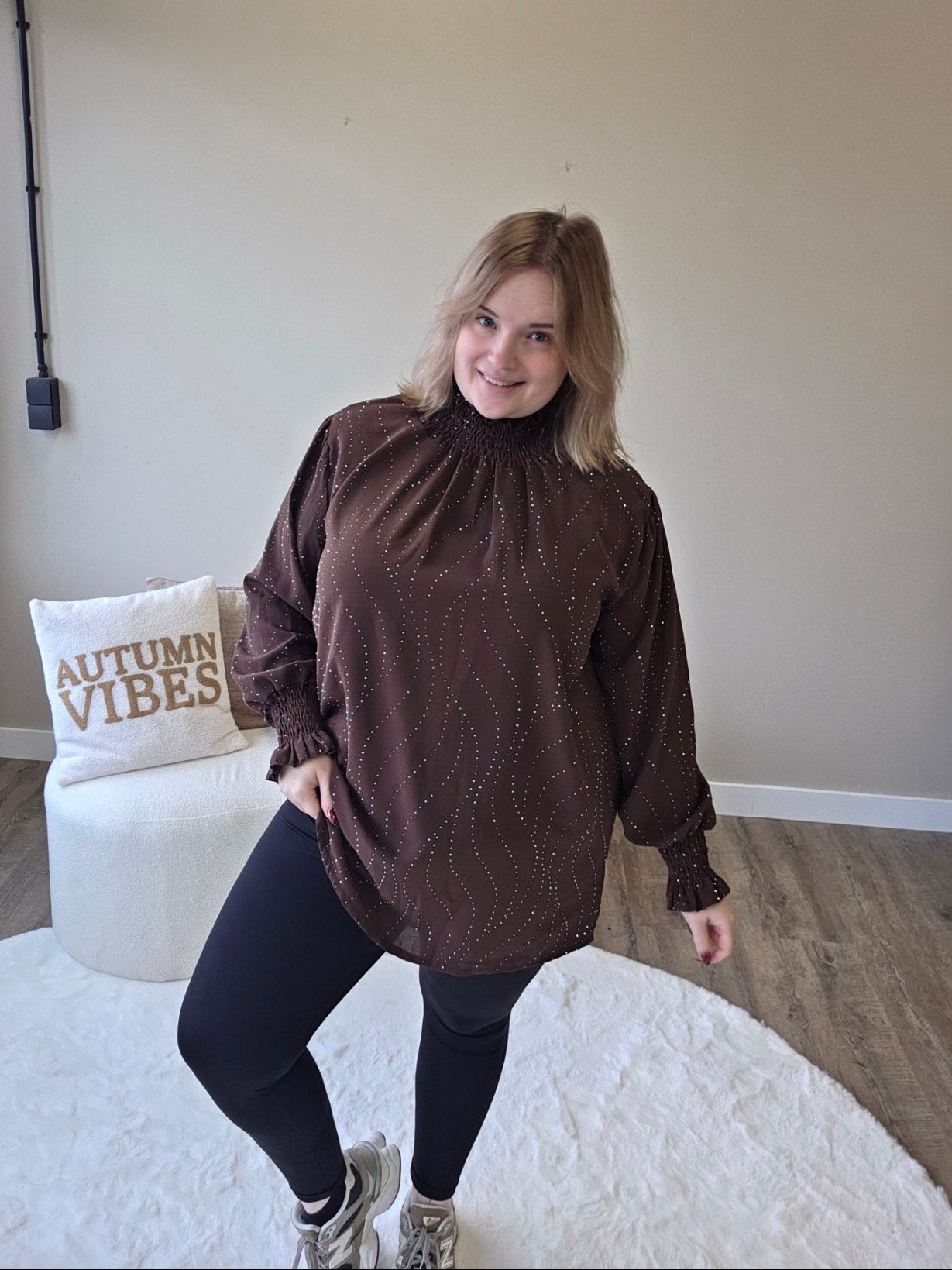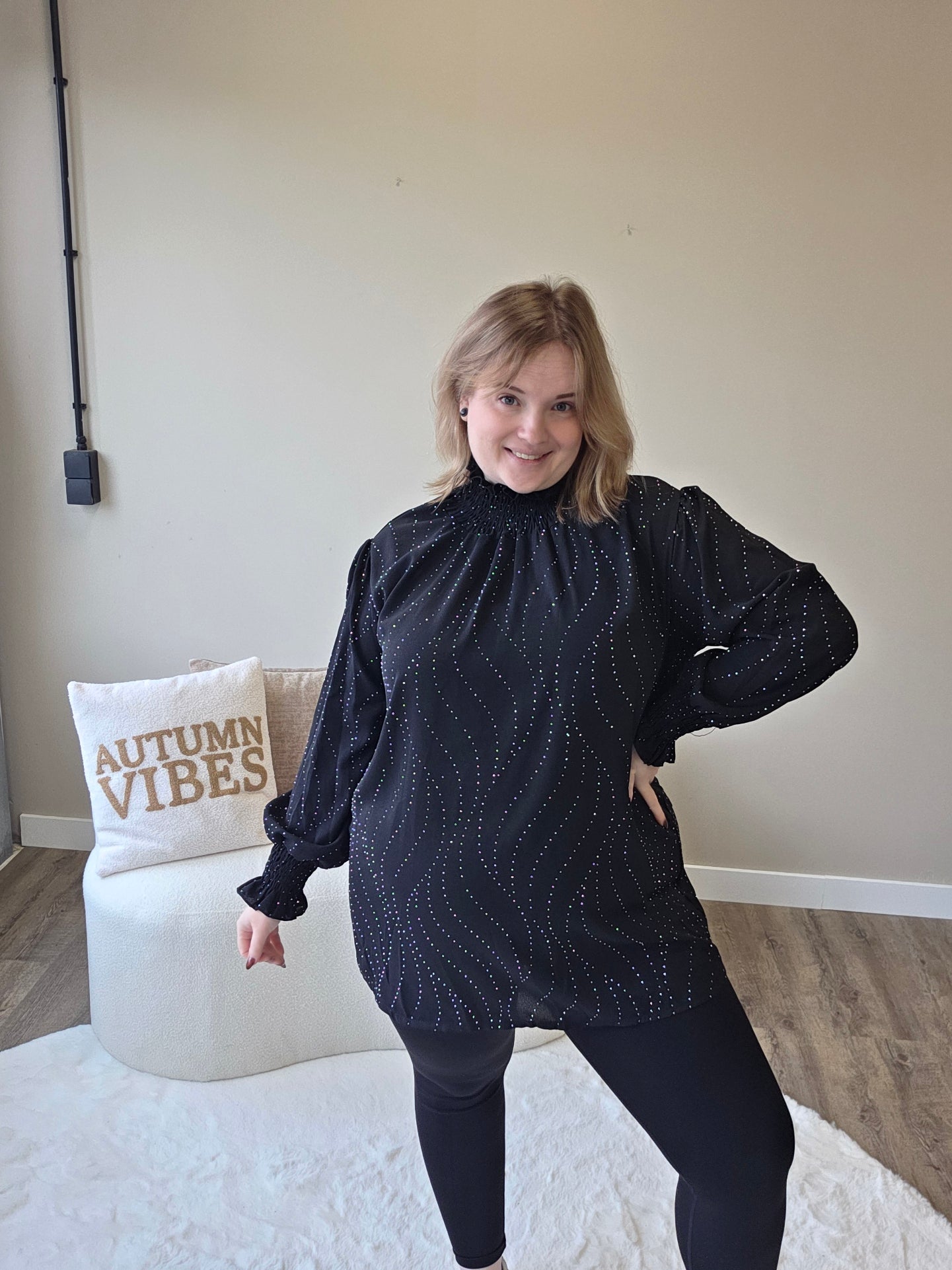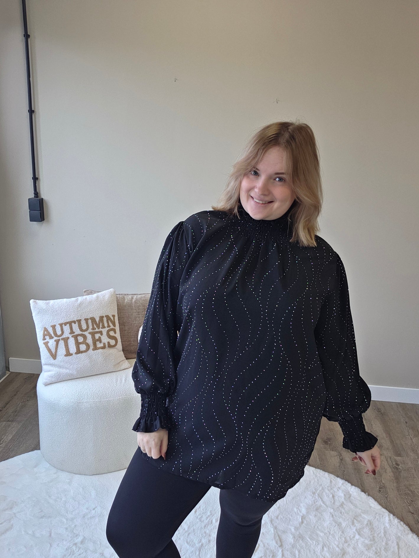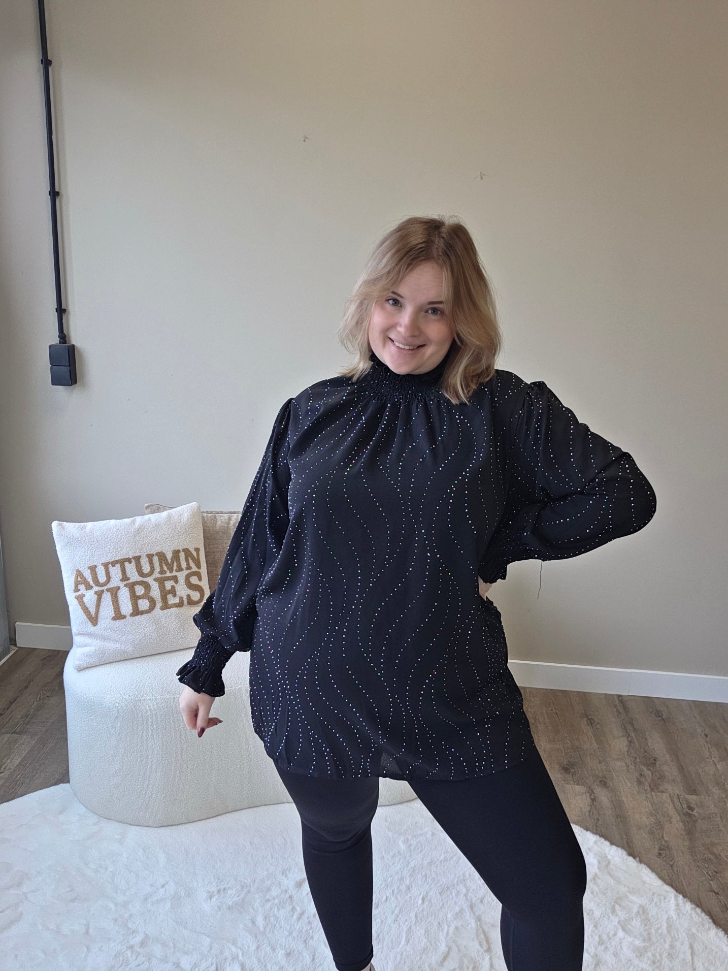 Voeg wat sparkle toe aan je look met dit prachtige rhinestone colletje! De fijne glinsteringen langs de col zorgen voor een elegante, feestelijke touch – perfect om elke outfit net dat beetje extra te geven.