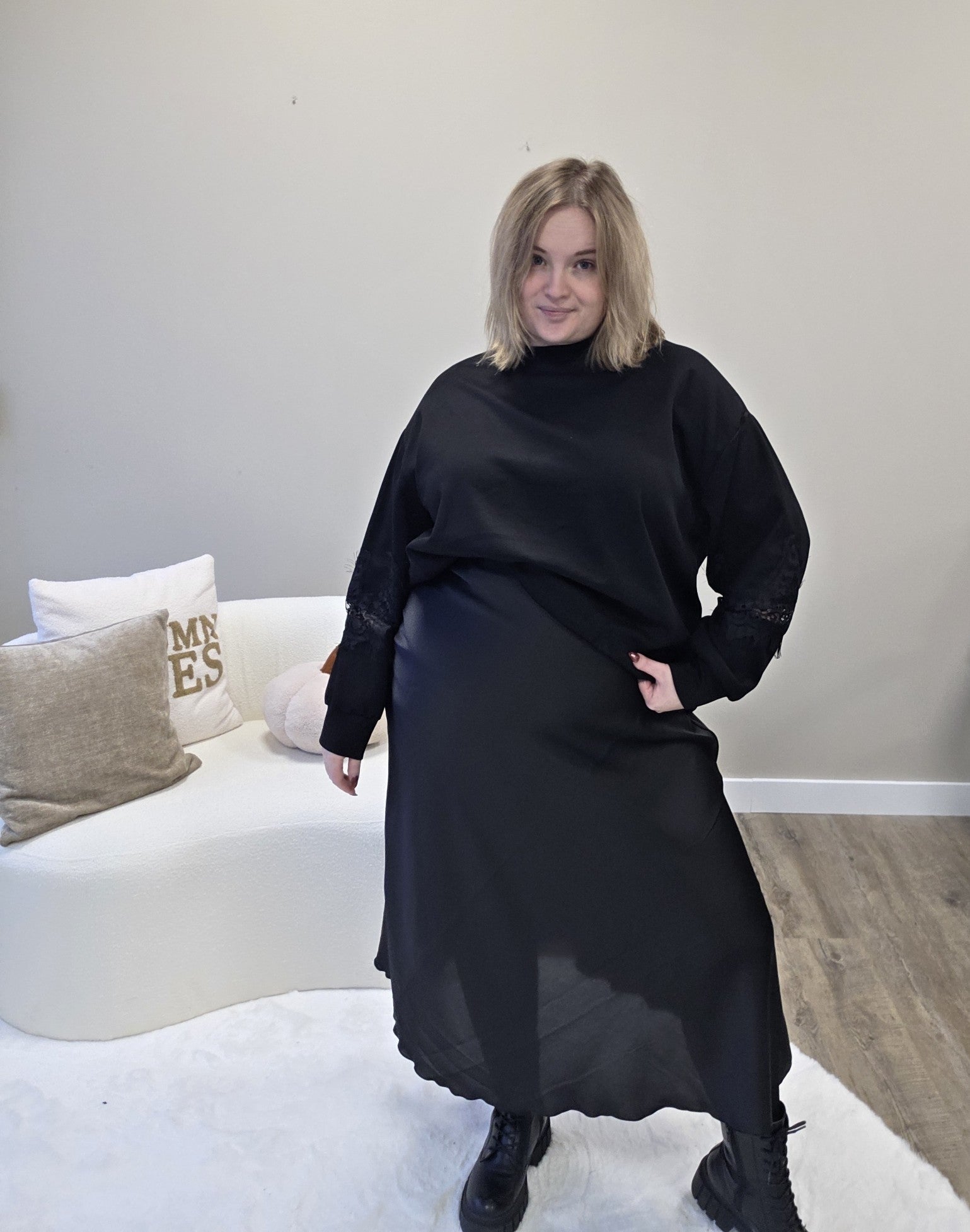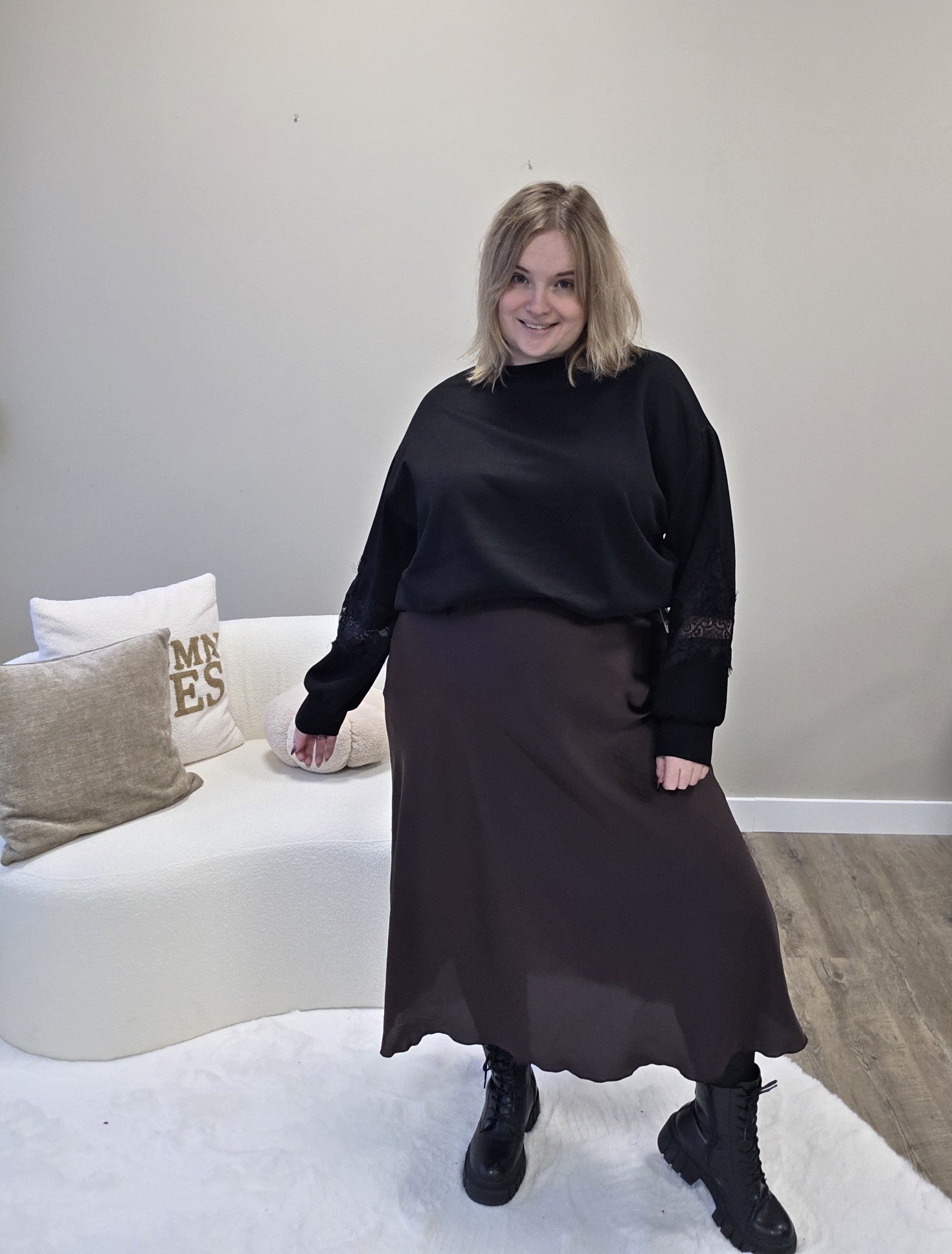 De rok valt soepel om je lichaam en beweegt prachtig mee — comfortabel én super flatterend. Draag ‘m met een simpele top, een cozy knit of een chique blouse… alles kan!