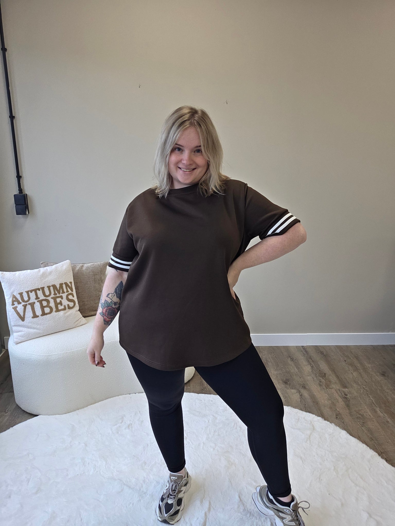 Sporty vibes & comfy style – het plussize T-shirt met strepen op de mouw!
