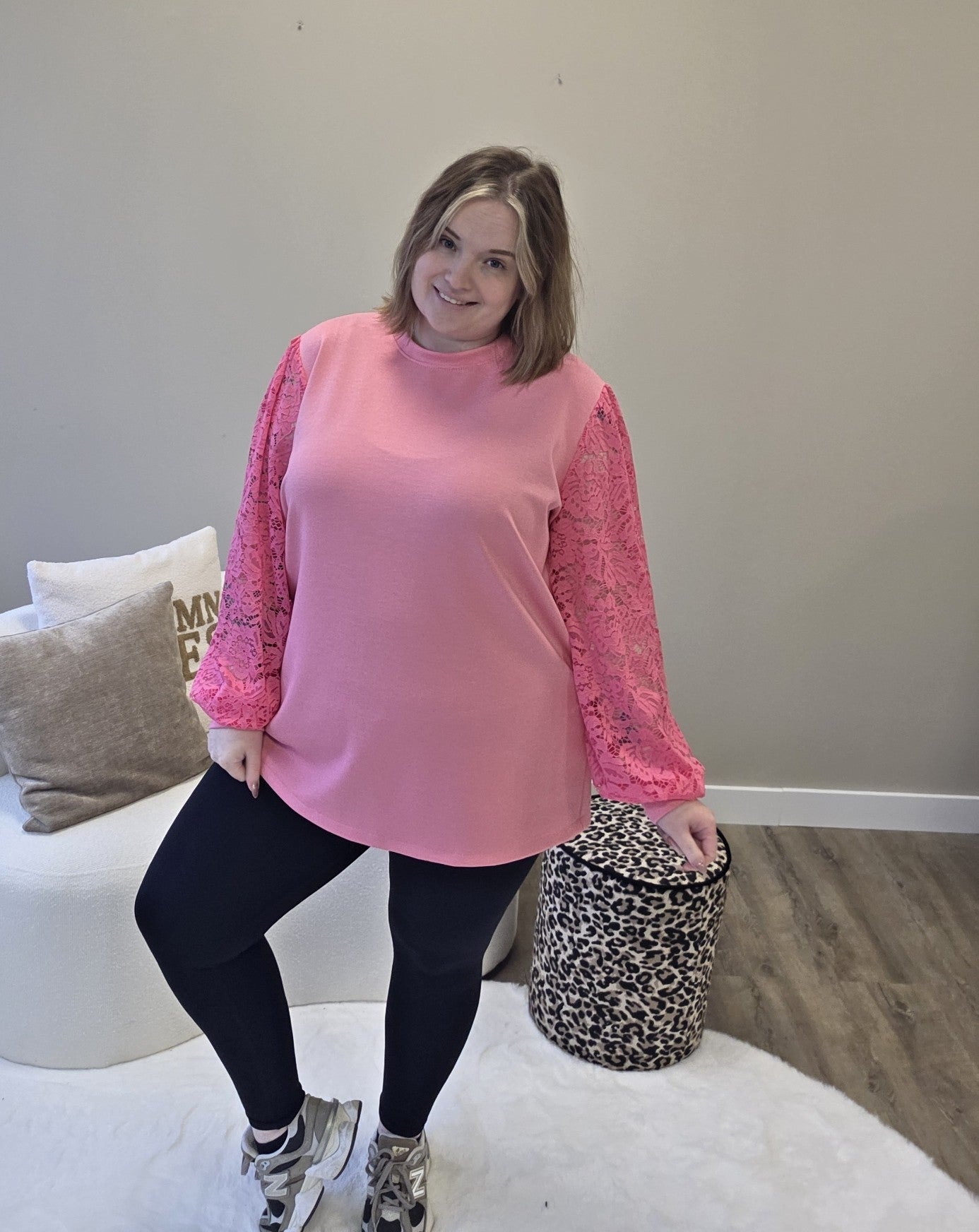 Deze sweater met kanten mouwen combineert het comfort van een zachte sweater met de verfijnde uitstraling van kant. De kanten mouwen geven de sweater een vrouwelijke, luxe touch, waardoor dit item perfect is voor wie houdt van comfy fashion met een chic accent.