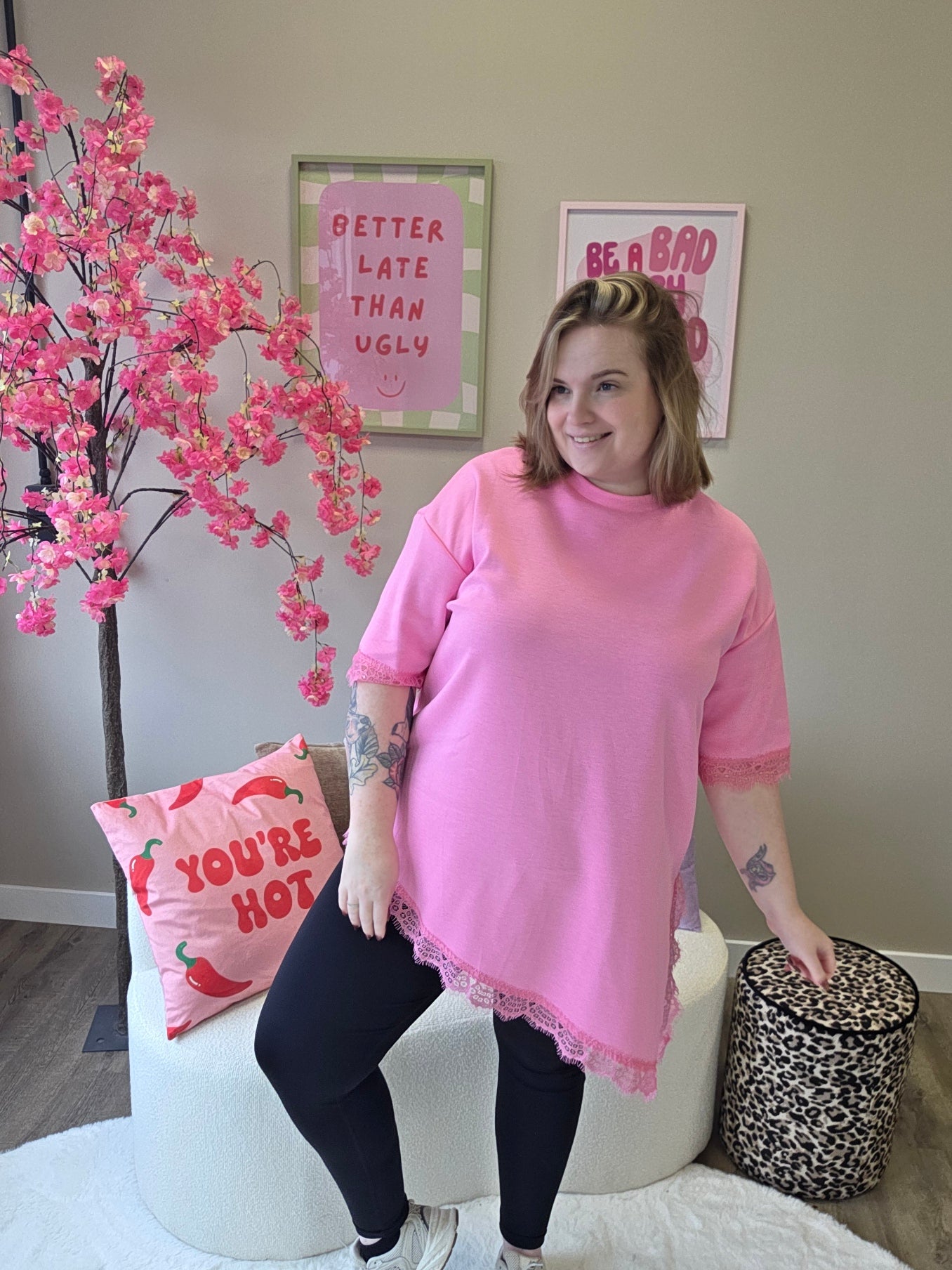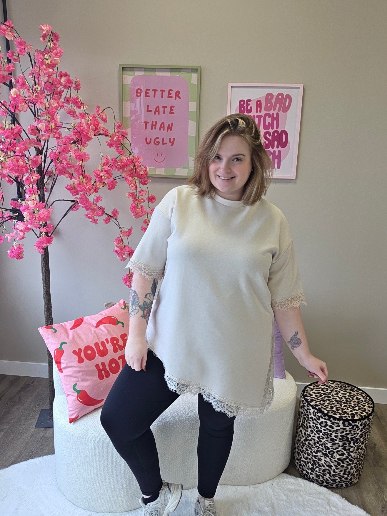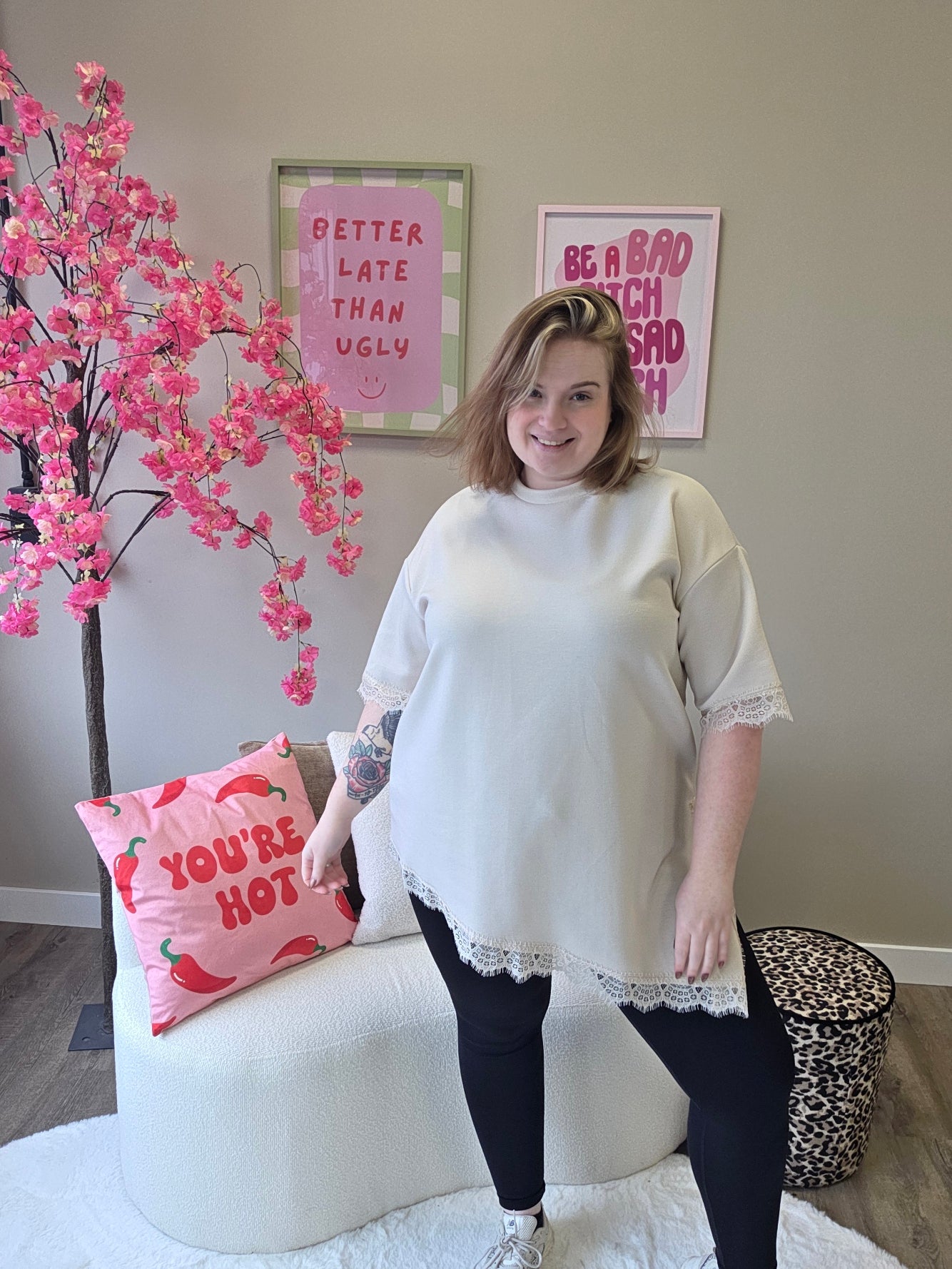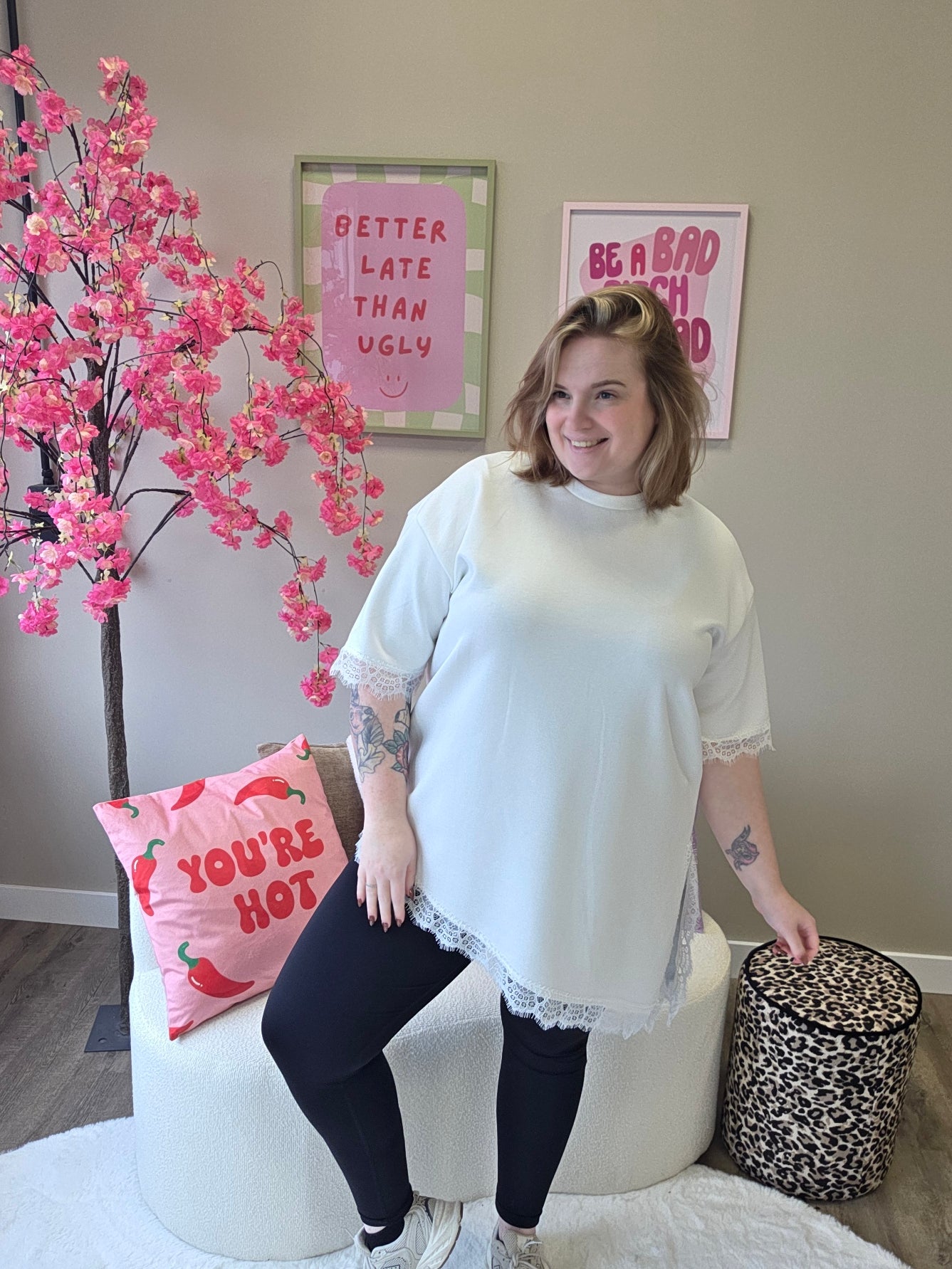Dit t-shirt is allesbehalve basic. Het schuine kanten detail geeft het shirt een speelse, vrouwelijke en luxe uitstraling, waardoor jouw outfit direct een stijlvolle upgrade krijgt.