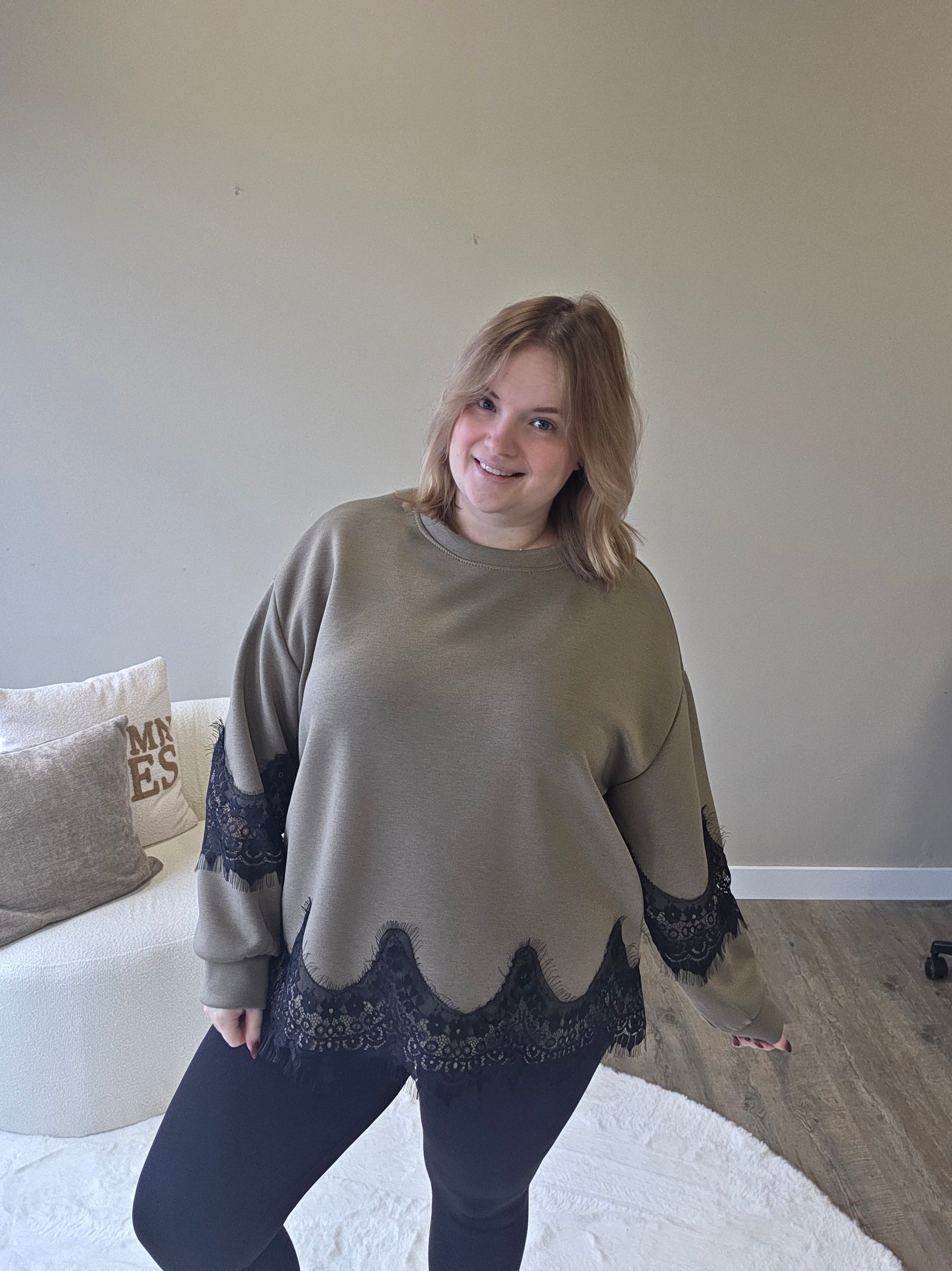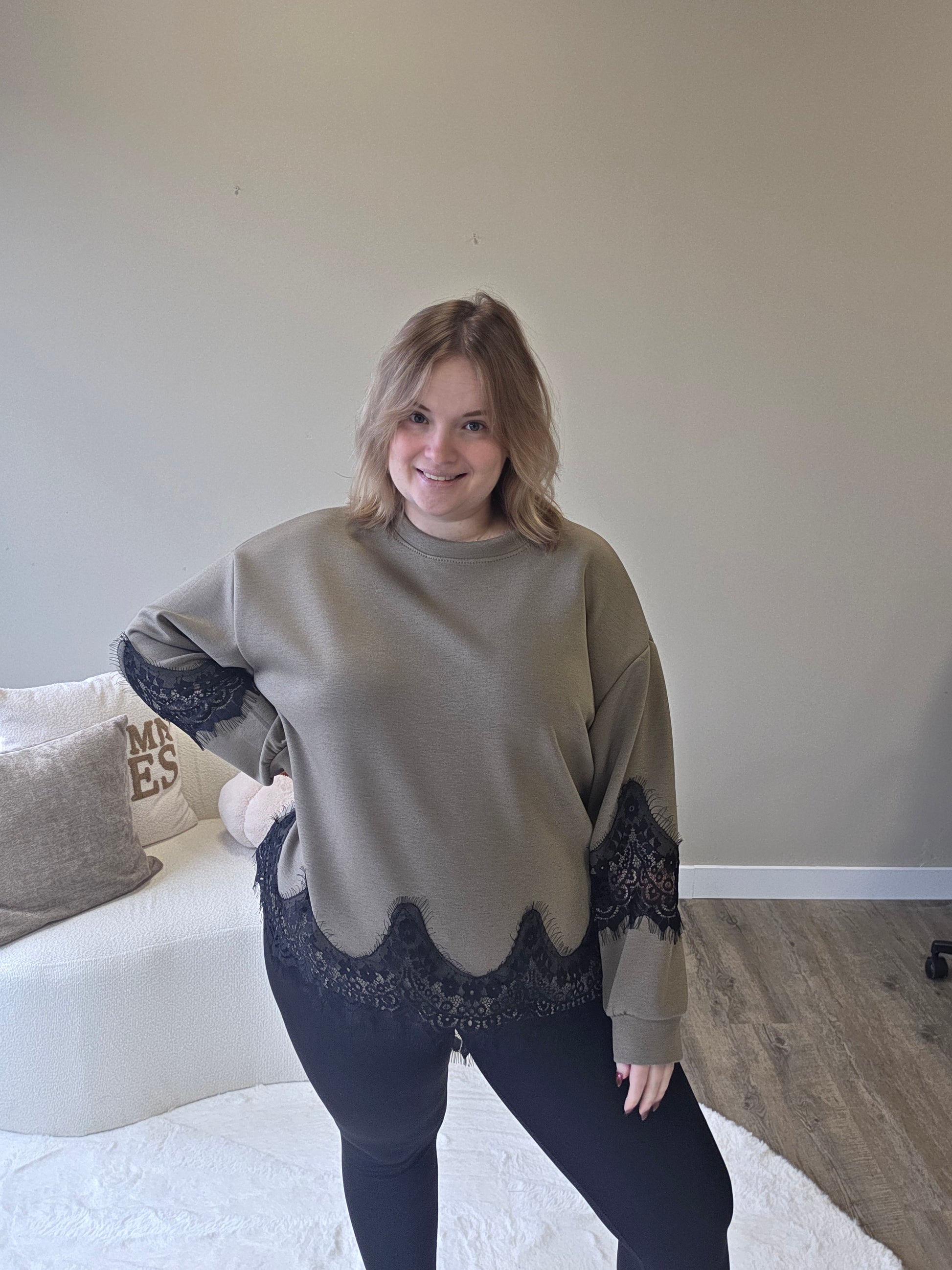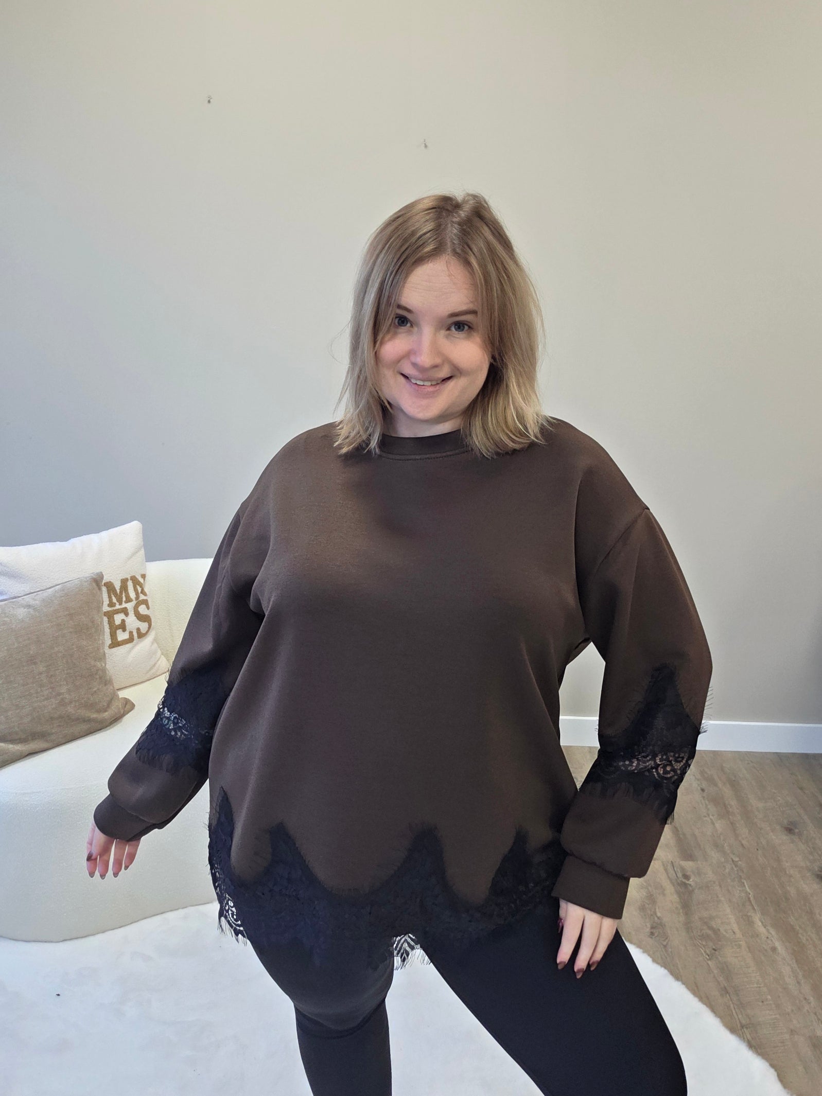 Deze prachtige trui met kant is de perfecte combinatie van cozy comfort en vrouwelijke elegantie. De zachte trui voelt heerlijk warm aan, terwijl de stijlvolle kantdetails zorgen voor een romantische, chique uitstraling. Zo krijgt jouw dagelijkse outfit net dat extra beetje charme!