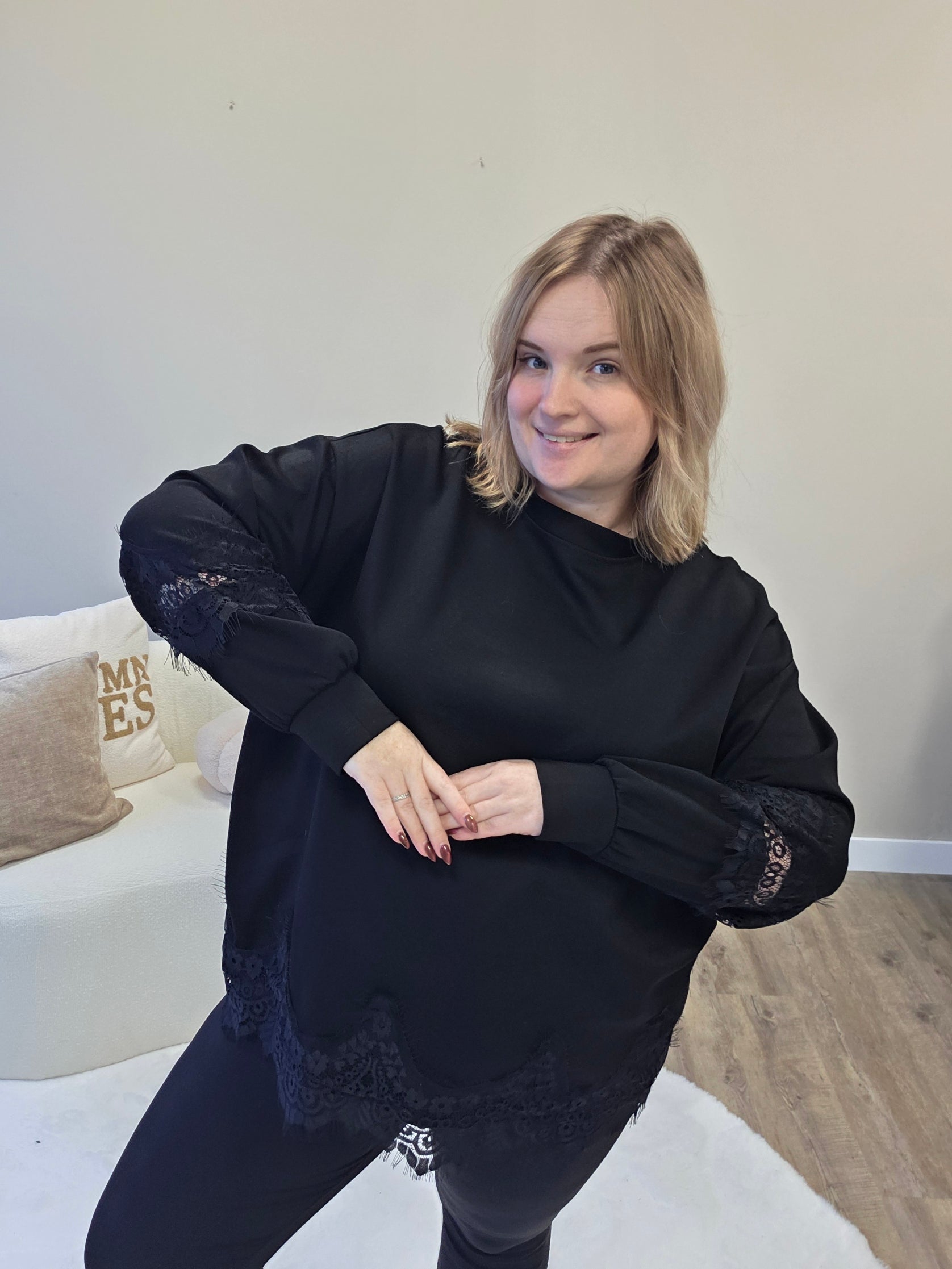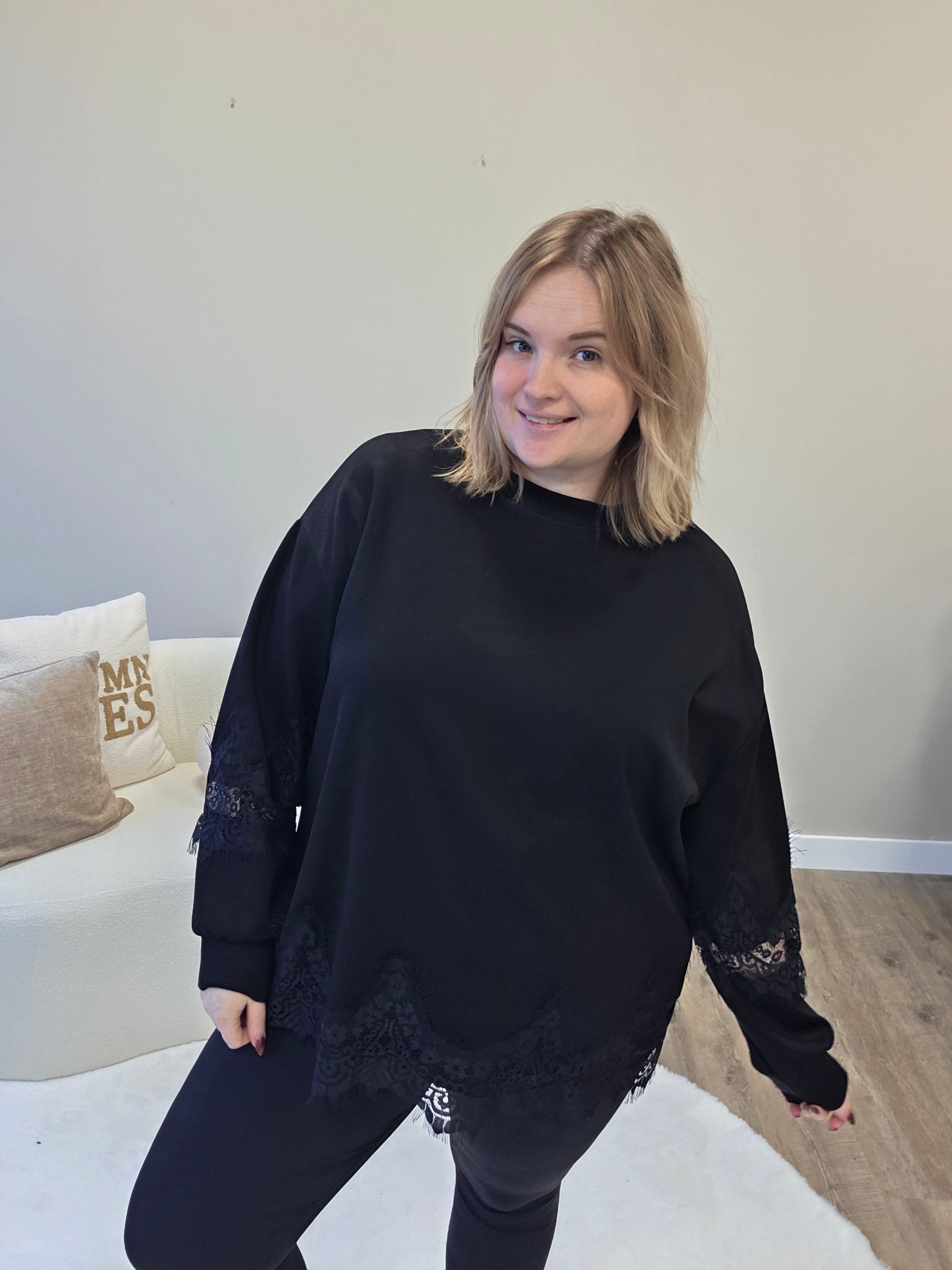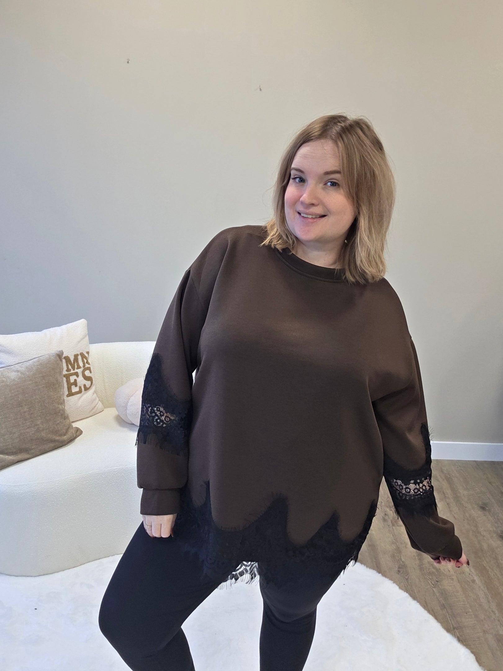 Deze prachtige trui met kant is de perfecte combinatie van cozy comfort en vrouwelijke elegantie. De zachte trui voelt heerlijk warm aan, terwijl de stijlvolle kantdetails zorgen voor een romantische, chique uitstraling. Zo krijgt jouw dagelijkse outfit net dat extra beetje charme!